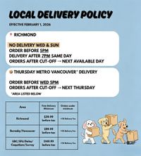 • Preferred time slots: You can request a 2-hour delivery window (9 AM–5 PM). While we’ll do our best to accommodate, please note this cannot be guaranteed.